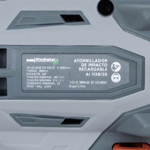 El atornillador de impacto GLADIATOR AI 1138/20 es una herramienta de uso profesional y que esta diseñada para insertar tornillos de gran diámetro y longitud gracias a su torque de 280 N/m y la gran potencia en su batería de 20 volts , ideal para usar en maderas de alta dureza. Esta herramienta contiene motor BRUSHLESS ( sin carbones ) esto permite menor desgaste de piezas y aumenta la vida útil del motor y rendimiento en general.