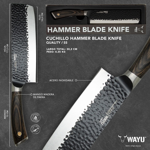 CUCHILLO MARCA WAYU MODELO HAMMER HACHA 30 CM LARGO TOTAL 17 CM DE HOJA 6 CM DE ANCHO DE HOJA 0,35 KG PESO