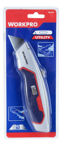 – Cuerpo de aluminio fundido a presión con agarre confortable – 3 hojas extra almacenadas en el cuerpo del cuchillo