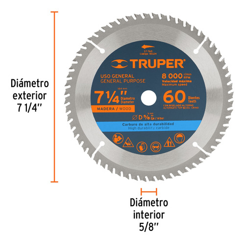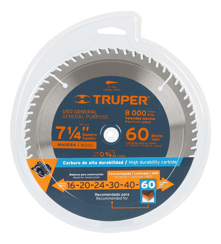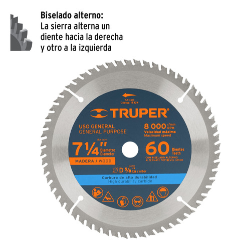 60 dientes de carburo de tungsteno.