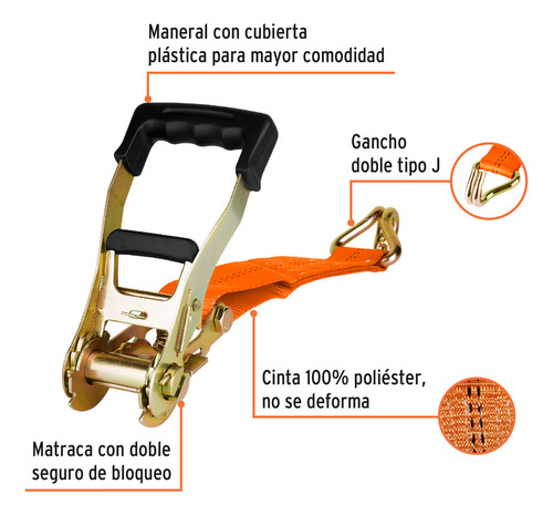 Gancho doble tipo J de acero para fijar la carga.