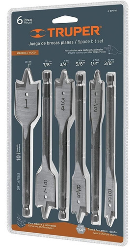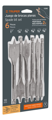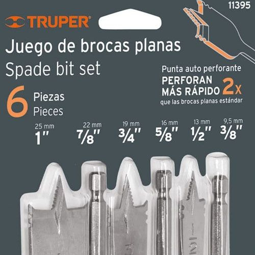 6 Brocas tipo paleta o tipo plana de 3/8″, 1/2″, 5/8″, 3/4″, 7/8″, 1″