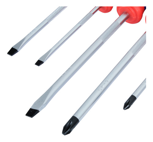 8 destornilladores: 6,5 x 38 mm, 5,5 x 100 mm, 6,5 x 100 mm, 8 x 150 mm, PH2 x 38, PH1 x 100, PH2 x 100, PH3 x 150 mm.