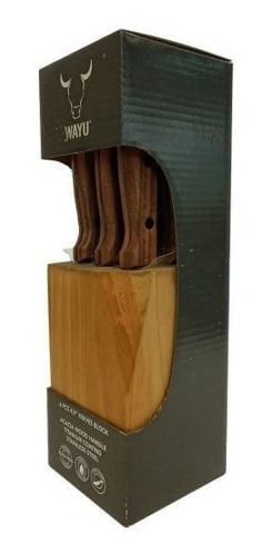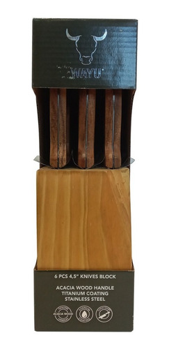 Set Cuchillos De Alta Calidad Acacia Wood 6 Piezas Cuchillo 4,5” Incluye soporte.