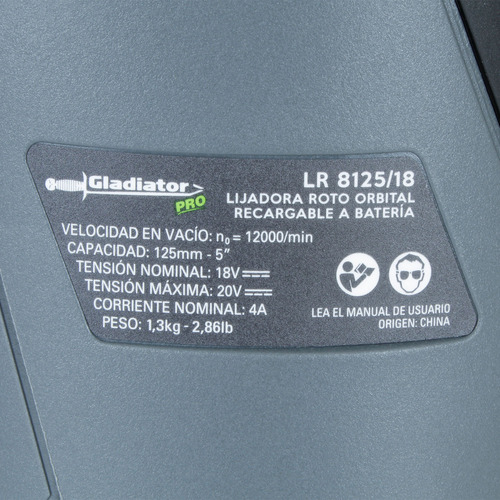 La lijadora roto orbital inalámbrica GLADIATOR LR 8125/18 esta diseñada para lijados secos con las correctas hojas de papel de lija para los siguientes trabajos : Superficie de lijado en madera , metal , plástico y superficies de relleno , remoción de pintura vieja y oxido.