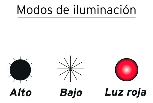 Modos de iluminación: alto, bajo y luz roja