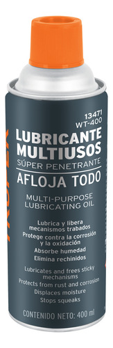 CARACTERISTICAS: Lubricante de alta penetracion. Lubrican y liberan mecanismos trabados. Protegen contra la corrosión y absorben la humedad. Limpian superficies con polvo, grasa y pegamento.