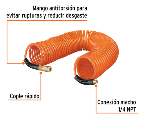 Manguera Aire Espiral Compresor 15mts X 1/4 Truper Ferrenet Naranja