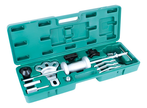 Incluye: 1 Extractor de 2 patas, 1 Extractor de 3 patas, 1 Extractor de tambores, accesorios para desabolladura y accesorios de golpe manual.
