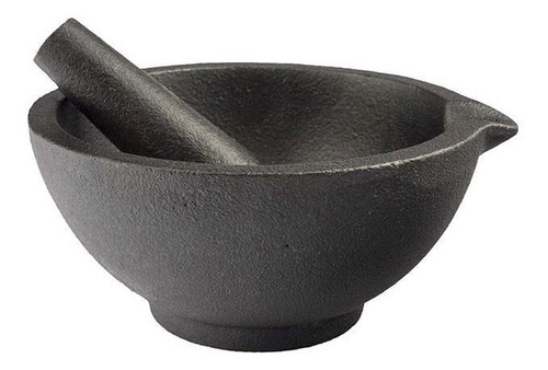Practico mortero de hierro fundido. Construccion gruesa y robusta. Se puede calentar a fuego directo. Fabricado e Importado de Italia