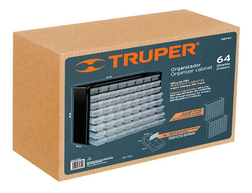 64 Gabetas con un ancho de 5.6cm, alto 4cm y un fondo de 15cm.