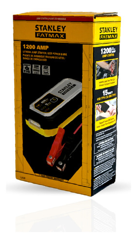 El Stanley Fatmax LJ12F entrega hasta 1200 amperios para arrancar autos y camionetas de hasta 8 cilindros sin necesidad de otro vehículo. Compatible con baterías AGM, gel y húmedas de 12V. Compacto y potente, cuenta con puertos USB-A y USB-C de 15W para cargar dispositivos móviles y luz LED para emergencias nocturnas. Incorpora protección contra polaridad inversa, pinzas metálicas recubiertas y pantalla de estado de carga fácil de leer.
