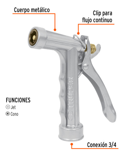 El bloqueo del gatillo permite que el agua fluya sin apretar constantemente