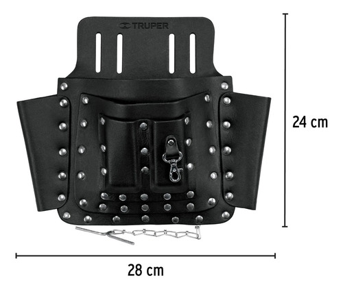 CARACTERISTICAS: 100% cuero bovino Remachado para incrementar su resistencia y durabilidad Compartimentos: 8 Medidas: B 28 x A 24 cm Espesor de cuero: 2.6 mm