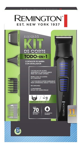 Recorta y dale forma a tu barba y bigote sin salir de casa con la precisión, versatilidad y control con el Kit Multifunción Recargable con 11 Piezas de Remington. Sus cuchillas de Acero Quirúrgico Autoafilables te brindan la precisión que necesitas para los detalles en tu barba y contorno del cuello y nuca. La gran variedad de accesorios te permitirán recortar, detallar o afeitar todo el vello no deseado. La batería con 70 minutos de uso sin cable la hacen ideal para llevar a cualquier lugar. Incluye 3 Peines Fijos de 3, 6 y 9 mm. Detalladora para nariz y oídos y otros accesorios que te ayudan a lograr el aspecto que deseas con una sola herramienta. Además, cuenta con una bolsa almacenadora para que la puedas llevar a cualquier lugar.