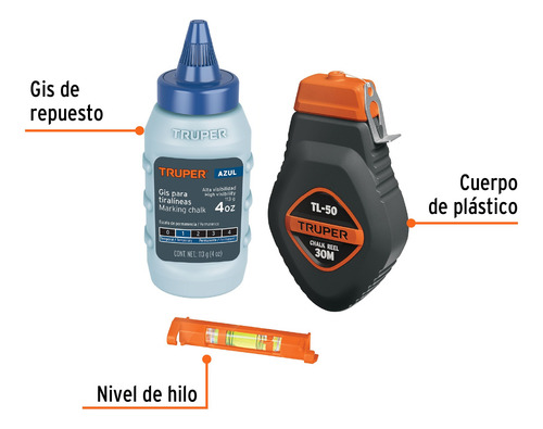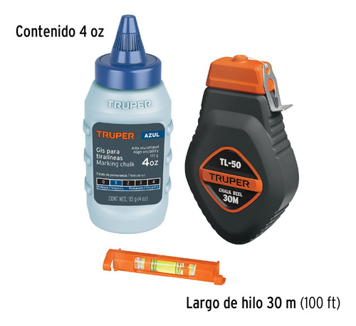 Tizador Tiralineas Truper 30mts Con Repuesto Nivel Ferrenet